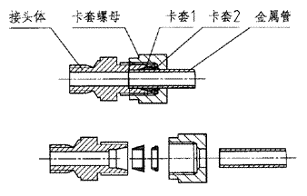其中雙卡套式管接頭選取了合理的錐面和卡套切入角,具有雙道密封效果。因此,增強了管接頭的密封性能,承壓能力和抗振能力。除此以外,其卡套的壓縮范圍較大,不僅能克服管子的固有公差,并能提高重復裝拆次數。本產品特別適合高壓、振動、密封性能要求高的工況下工作。
